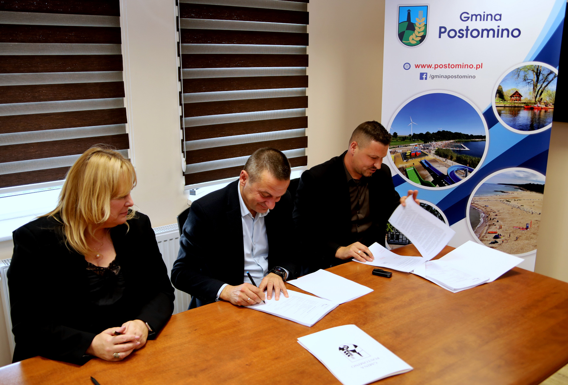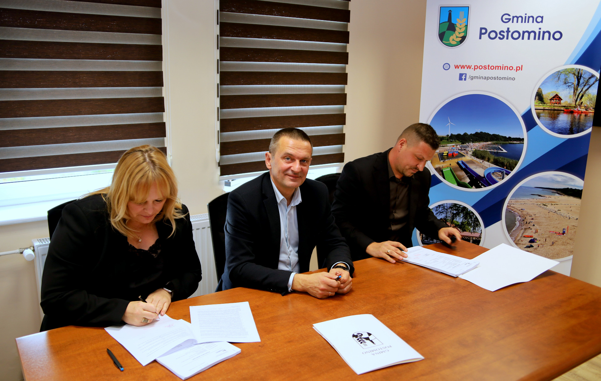 Przedsięwzięcie realizowane będzie przez Firmę Ogólnobudowlaną „LIDER” z siedzibą w Złakowie. Umowę, przy kontrasygnacie Skarbnik Gminy Doroty Bałukonis , podpisał Wójt Gminy Postomino Janusz Bojkowski oraz Wykonawca Mateusz Rąpalski.