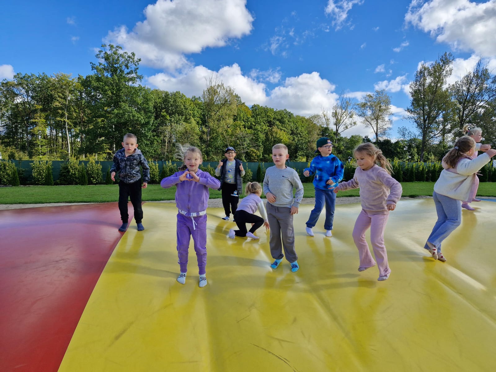 Nie zabrakło oczywiście czasu na zabawę – wspólne gry terenowe, skoki na trampolinie i przejazdy mini traktorkami wywołały mnóstwo uśmiechów. Na zakończenie wycieczki uczestnicy zasiedli do wspólnego obiadu, przy którym dzielili się wrażeniami z pełnego przygód dnia.