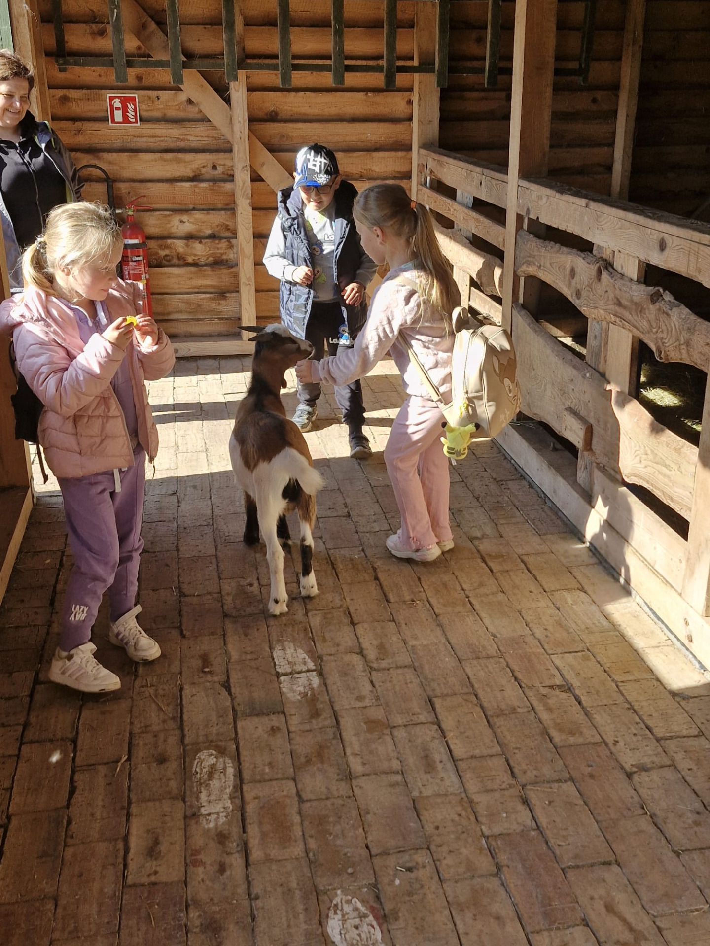 Już od pierwszych chwil po przyjeździe na farmę na dzieci czekało mnóstwo atrakcji. Uczniowie mieli okazję poznać zwierzęta gospodarskie, zobaczyć, jak wygląda codzienne życie na wsi, a nawet spróbować swoich sił w karmieniu kózek i królików.
