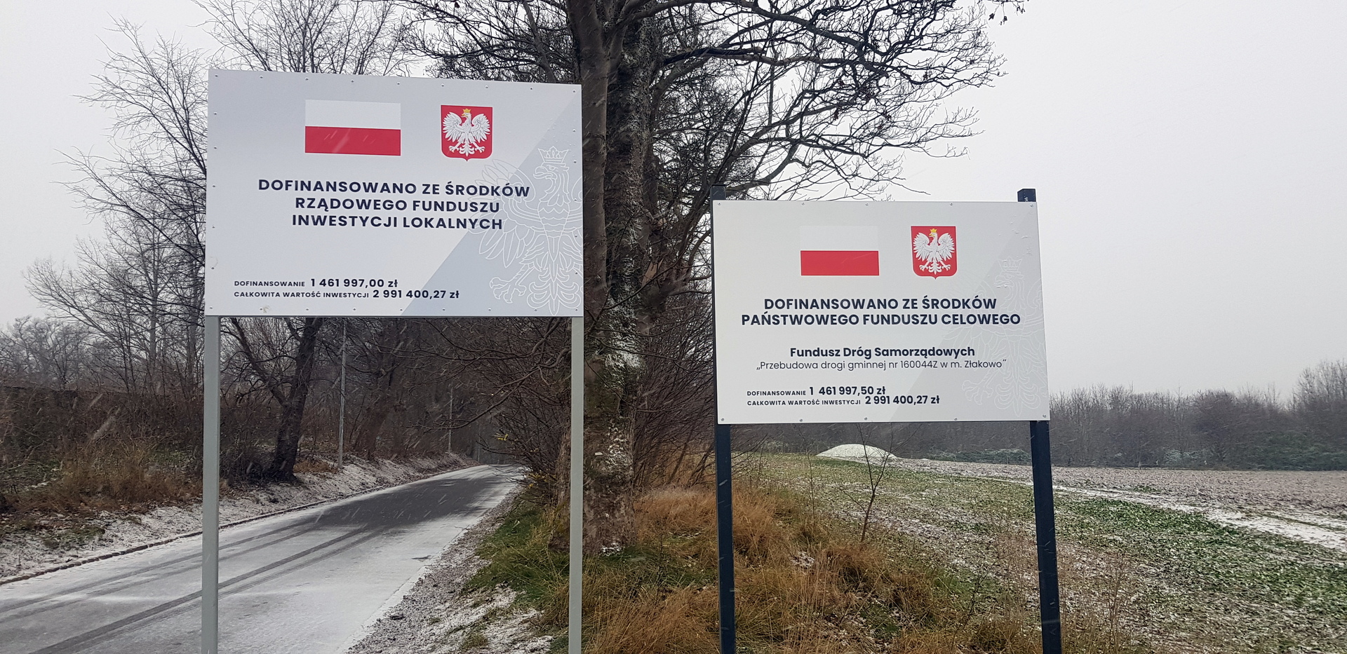 Wartość całej inwestycji wyniosła 2 973 400,27zł z czego 1 461 997,50 zł stanowiły środki Funduszu Dróg Samorządowych natomiat 1 461 997,00 zł to środki z Rządowego Funduszu Inwestycji Lokalnych.
