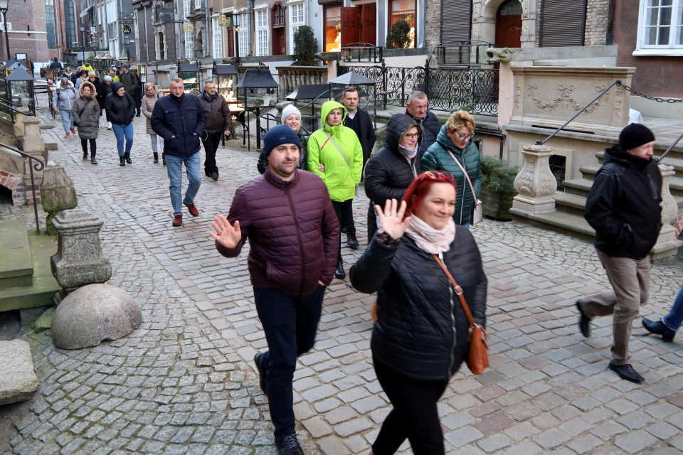Gdańsk to miasto z wieloma zabytkami, i tak po wizycie w Centrum Solidarności uczestnicy wyprawy na czele z przewodnikiem ruszyli na spacer ulicą Długą podziwiając otaczające ich kamienice.