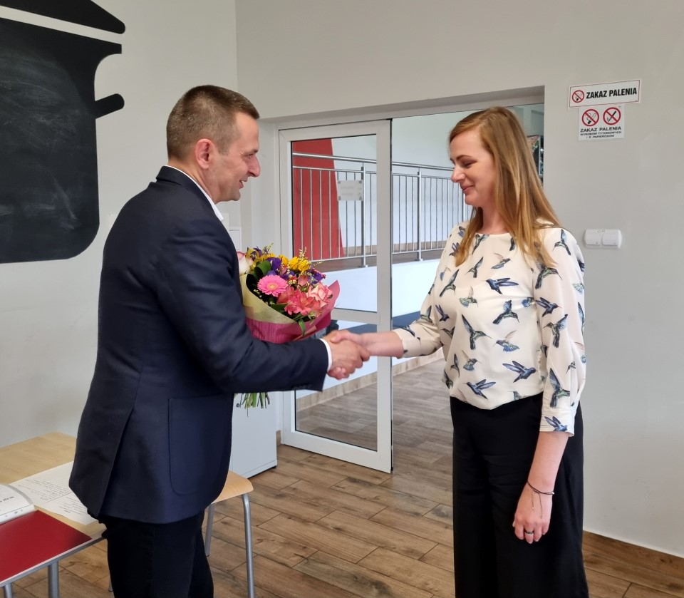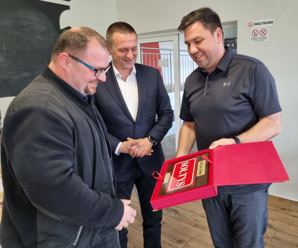 Panu Marcinowie Tamie Wójt życzył dobrze układającej się współpracy z radą sołecką i mieszkańcami oraz zapału do działania, a radny Łukasz Zięba wraz z gratulacjami wręczył prezent w postaci okolicznościowego grawertonu.