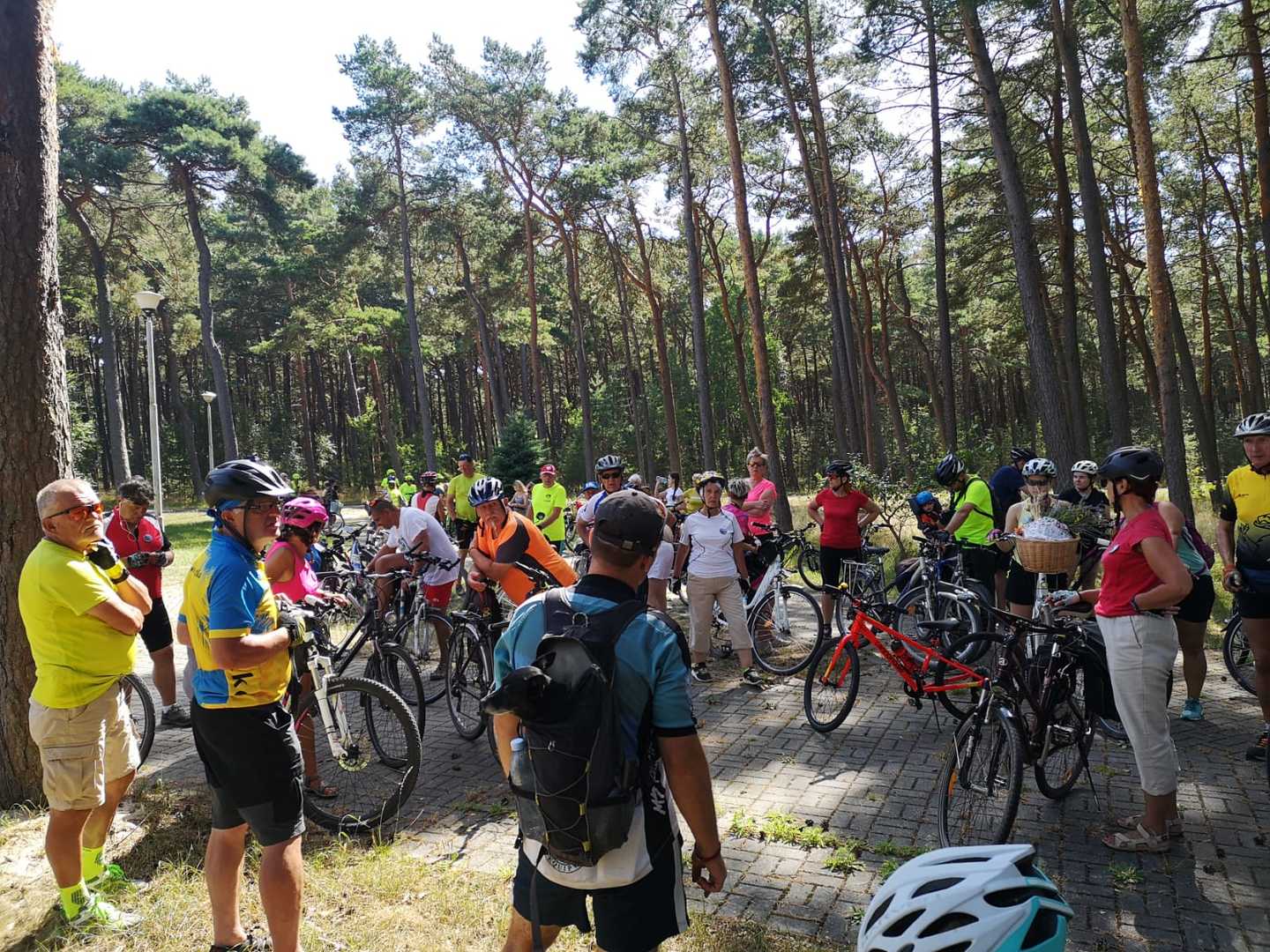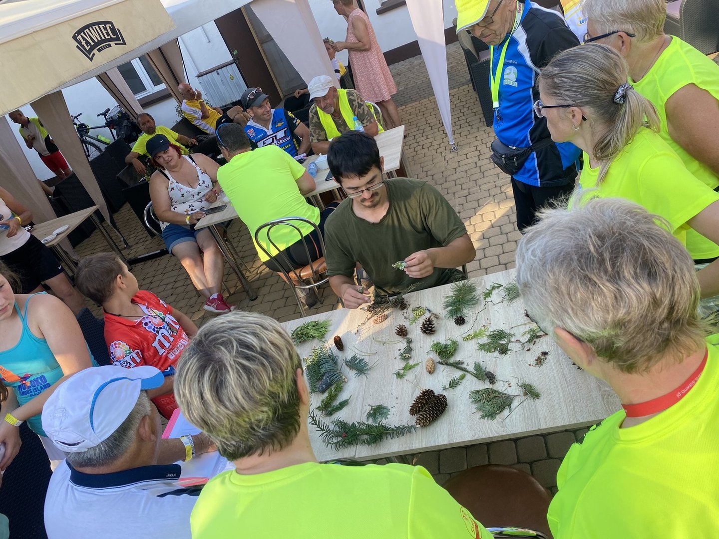 Dłuższą przerwę rajdowicze mieli w Parku Edukacji i Rozrywki LEONARDIA w Krupach. Znajdują się tam zarówno gry jedno jak i kilkuosobowe. Proste zasady sprawiają, że nawet najmłodsi nie będą mieć problemu z ich opanowaniem, a rywalizacja i ruch na świeżym powietrzu to powrót do spędzania czasu z rodziną i przyjaciółmi, z dala od wirtualnego świata. Każda gra w parku została zaprojektowana i wykonana ręcznie w jednym egzemplarzu. Odwiedziny w tym niezwykle ciekawym miejscu zakończyły się ogniskiem z kiełbaskami. Po uzupełnieniu kalorii cykliści ruszyli dalej.