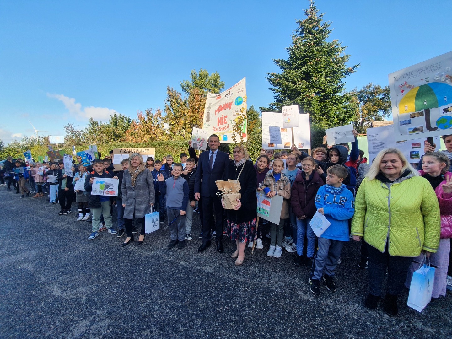 W ramach wsparcia podjętych przez dzieci i młodzież działań proekologicznych Wójt Gminy Postomino Janusz Bojkowski spotkał się z uczestnikami happeningu i wskazał działania jakie podejmuje lokalny samorząd w trosce o czyste powietrze m. in. poprzez realizację programu „Czyste Powietrze”, którego celem jest zmniejszenie lub uniknięcie emisji pyłów i innych zanieczyszczeń wprowadzanych do atmosfery przez nieefektywne źródła ogrzewania.